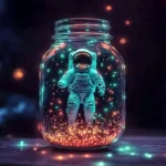 - Place the LED tea light candle inside the jar, ensuring it doesn’t obstruct the view of the astronaut or stars.