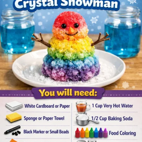 A: Typically, crystals begin forming within a few hours, but it’s best to let the snowman sit overnight for optimal results.