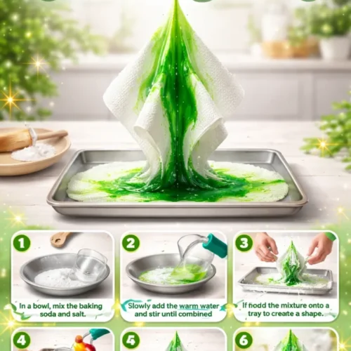 - Add Sparkle: Mix in glitter into the baking soda for a shimmering tree.