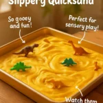 This cornstarch and oil slippery quicksand is an exciting way to learn about science while enjoying a hands-on activity. We’d love to hear about your experiences! Please share your versions or leave a comment below with any tips or variations you tried! Happy playing!
