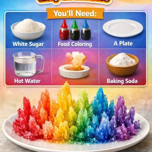 • Color Variations: Experiment with different food coloring combinations to create multi-colored crystals.