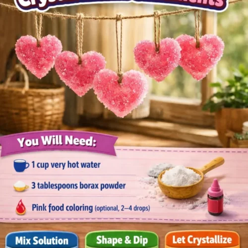 Creating DIY Borax crystal heart ornaments is a delightful and educational project perfect for crafters of all ages. Not only do these beautiful ornaments serve as stunning decorations, but they also allow you to explore the chemistry behind crystal growth. As you dissolve the Borax in hot water and watch the crystals form over time, you’ll experience the joy of transforming a simple ingredient into a work of art. This project combines science, creativity, and hands-on fun, making it an ideal activity for families or classrooms. Whether you want to hang them on a tree, use them as gifts, or just enjoy their sparkly beauty, these crystal heart ornaments are sure to brighten up any space. Let’s dive in and craft something truly special!