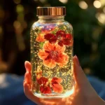 • Insert Leaves: Use a funnel to add a handful of small artificial leaves into the bottle. Consider a mix of colors for a dynamic visual.