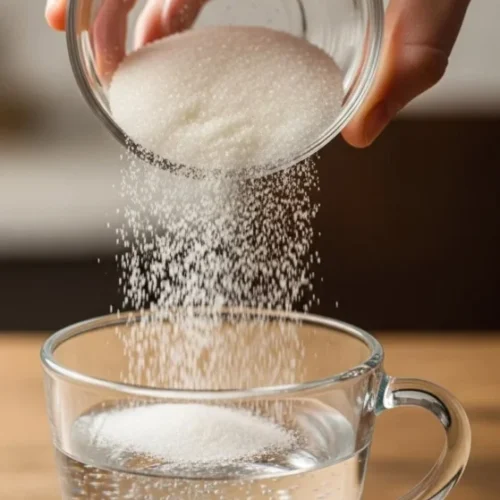 - In a plastic cup or bowl, mix 1 cup of hot water with ½ cup of Epsom salt or sugar.