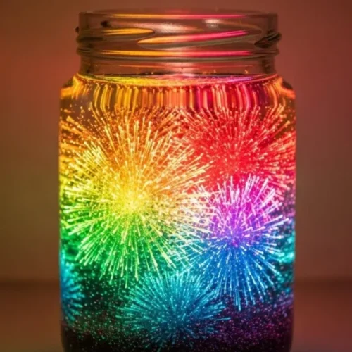 • Shake the jar gently to mix, and watch as the colors burst and swirl, mimicking fireworks!