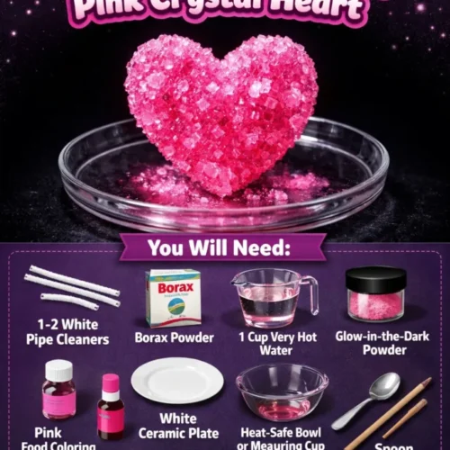 This glow-in-the-dark pink crystal heart craft is a rewarding blend of creativity and science. It not only beautifies your space but also encourages exploration and learning. We would love to hear about your versions of this craft! Share your creations and experiences in the comments below!