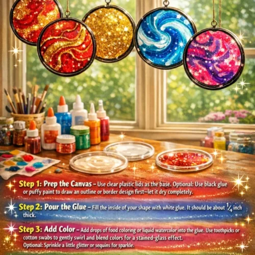 Create colorful and unique liquid glue suncatchers that brighten your home with creativity and joy. Perfect for all ages, this craft allows for endless design variations!