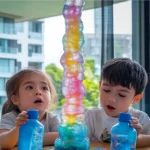 - Blow Gently: Slowly blow through the wand or straw to create bubbles. Watch as they form and dance with colors!