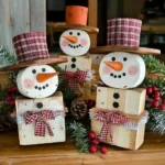 Craft delightful rustic wooden snowman ornaments that add a personal touch to your holiday decor and make for thoughtful gifts.