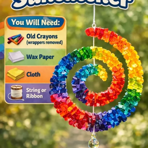 A DIY project that involves crafting a colorful spiral suncatcher that casts beautiful rainbows in sunlight, perfect for home decor and a fun activity for all ages.