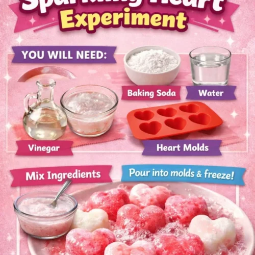 Create a visually stunning sparkling heart for Valentine's Day using baking soda and vinegar, perfect for a fun and educational activity.